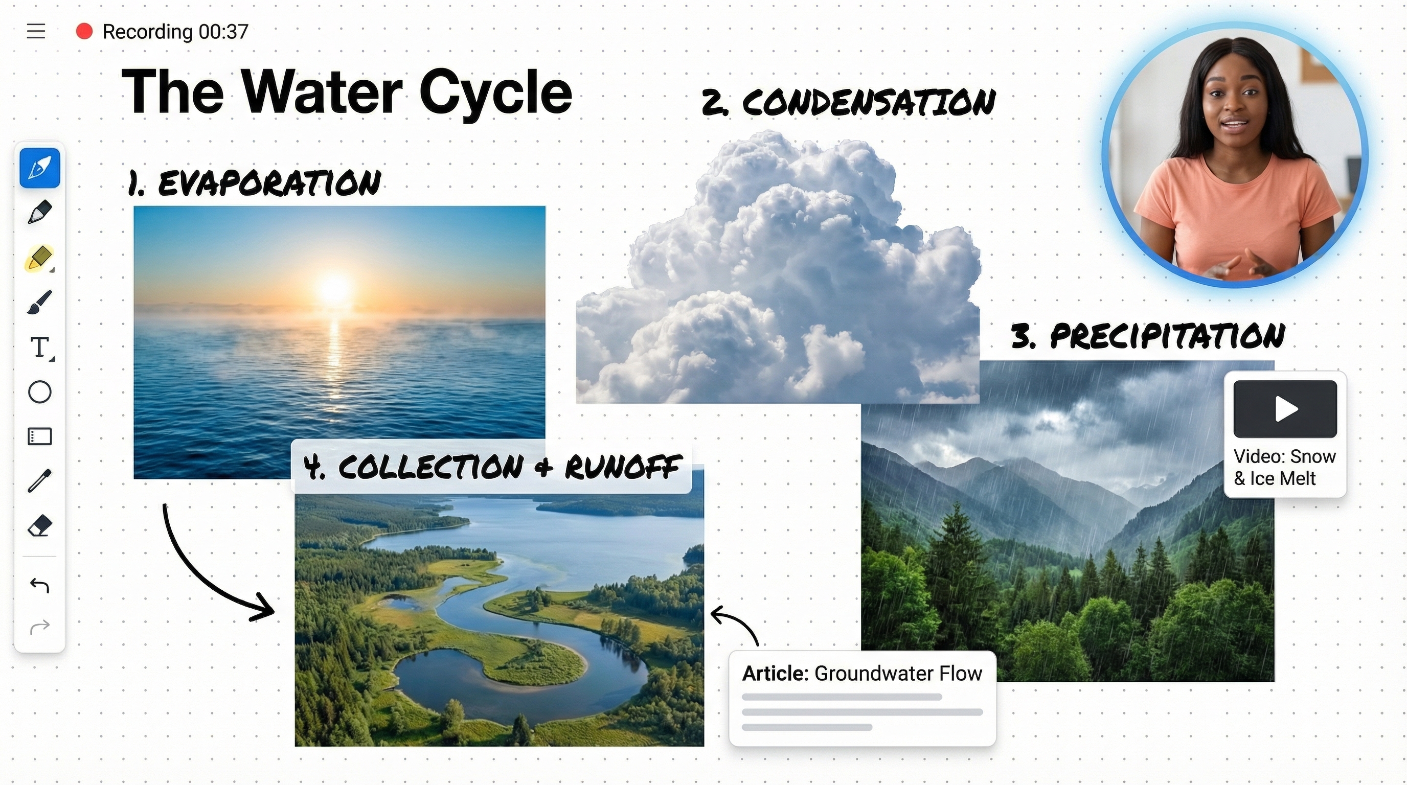 Leerlingen gebruiken de werkruimte om materiaal te maken waarmee ze hun klasgenoten lesgeven. Zo weten leerlingen zeker dat ze klaar zijn en hebben docenten een verifieerbaar spoor van hun denkproces