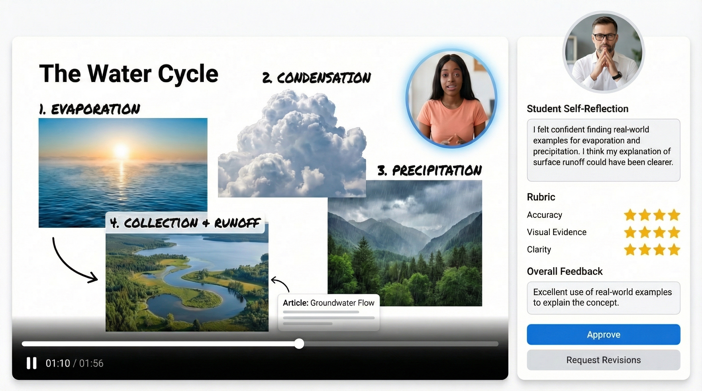 Evalueer het leerproces in realtime met onze ingebouwde rubrics. Beoordeel het voorbereidingsartefact, de live prestatie en de groepsdynamiek, en rond alles eenvoudig af voordat de bel gaat